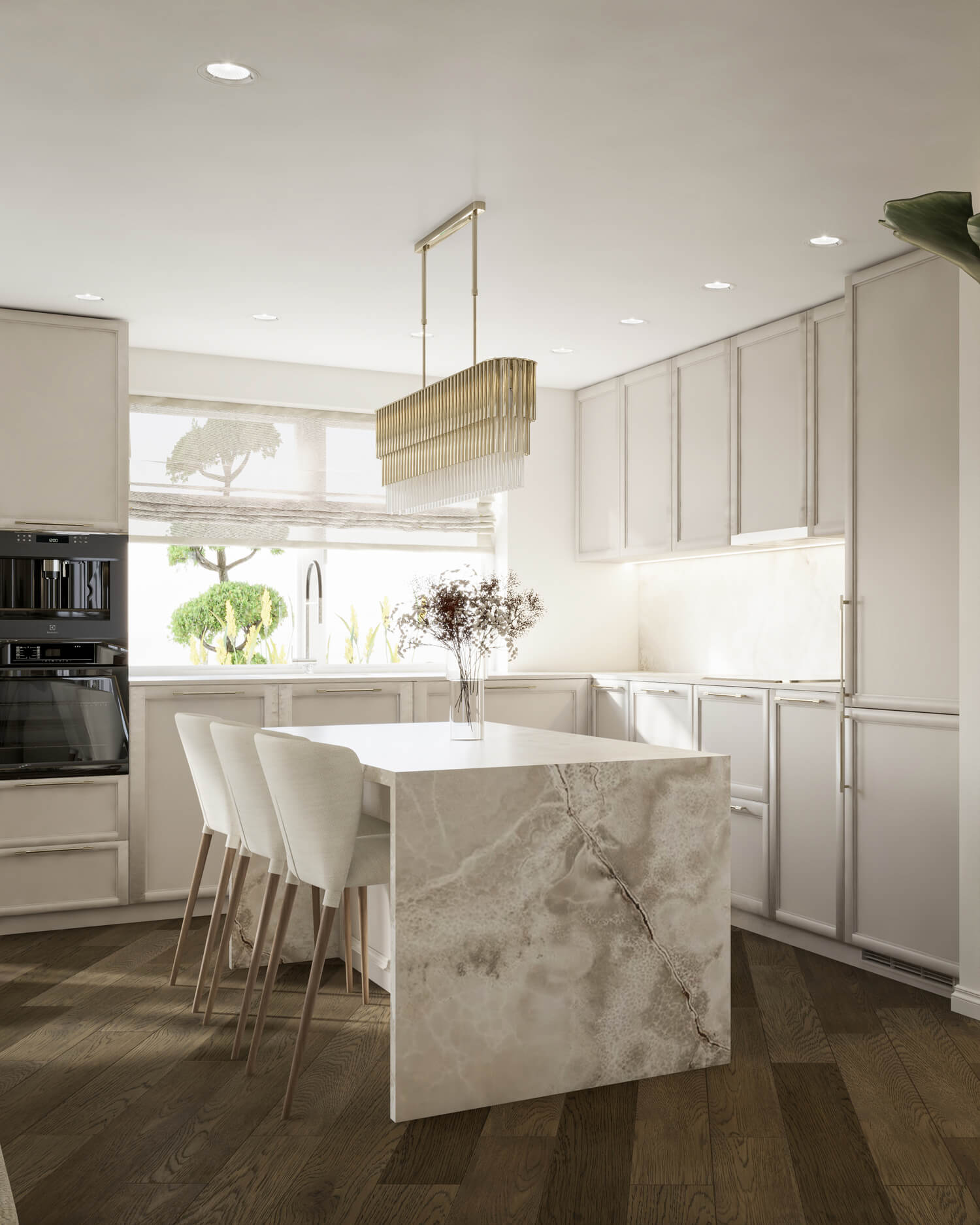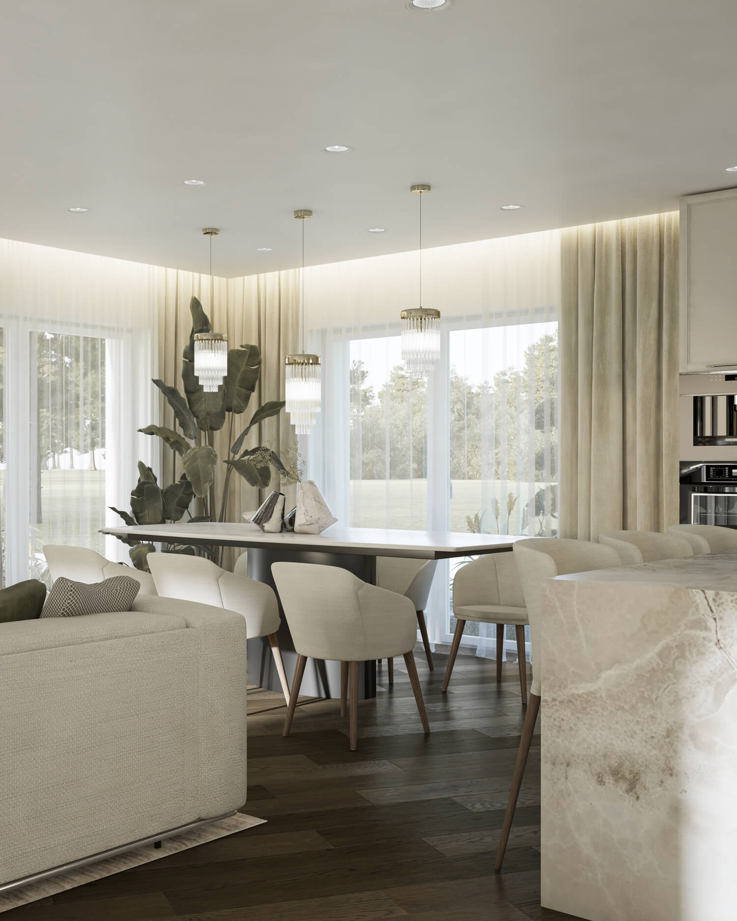 A bright, spacious apartment by the sea, designed for longevity. The existing solutions were dictated by the need to balance two main objectives: a sense of cleanliness and the keeping of pets. Light-colored furniture panels resistant to fingerprints were chosen for surfaces subject to intensive use, while furniture panels were used on the walls to provide contrast.
